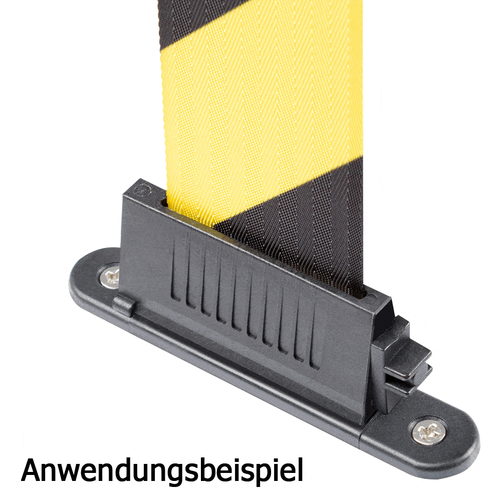 - Das Gurtende kann einfach mit einem Wandclip, einer Gurt-Wandkassette oder einem anderen Sperrpfosten verbunden werden