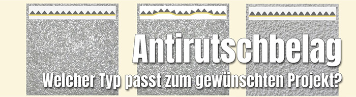 Doch welche Möglichkeiten der Beschichtung gibt es denn nun für Böden? Und wie sichert man am besten Treppen oder Stufen? Sollten für Außenbereiche andere Antirutsch-Mittel benutzt werden als für das Innere der Betriebshalle?